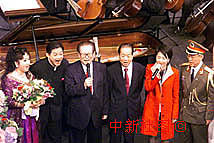 圖片:江澤民與香港歌唱家莫華倫同臺(tái)高歌(一) 2000年12月20日 16:19 江澤民主席與錢其琛、于永波以及香港歌唱家莫華倫同臺(tái)高歌。中新社傳真 滿會(huì)喬 攝