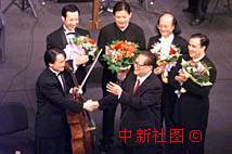 圖片:江澤民稱贊王健的演奏“動(dòng)人心弦” 2000年12月20日 16:42 國(guó)家主席江澤民在旅歐青年大提琴家王健演奏中國(guó)民樂(lè)《二泉映月》后,稱贊他的演奏“動(dòng)人心弦”。中新社傳真滿會(huì)喬攝 |