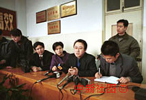 河南洛陽中心醫(yī)院院長李亞偉(右三)27日向媒體介紹說:洛陽特大火災發(fā)生后,有42名受害者送入該院,其中39名已經死亡,有3名幸運者脫離危險。中新社圖 慎重 攝