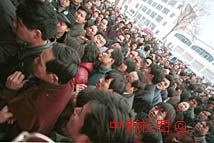 洛陽特大火災(zāi)遇難者家屬認(rèn)領(lǐng)尸體的工作27日開始,等待已久的人們一擁而入。中新社圖 慎重 攝