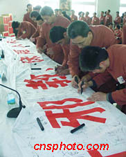 近百名悔悟的法輪功練習(xí)者22日參加了“反對邪教,保障人權(quán)”百萬公眾簽名活動,決心與法輪功邪教徹底決裂。中新社圖 潘旭臨 攝