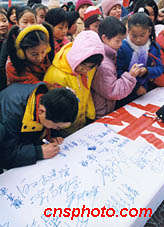 河南鄭州近萬名中小學(xué)生簽名拒絕邪教 2001年2月9日 10:31 ![]() 河南省會(huì)鄭州萬余名青少年和各界群眾聚集火車站廣場(chǎng),舉行“崇尚科學(xué)、反對(duì)邪教”簽名活動(dòng),同時(shí)鄭州市青年志愿者反邪教宣傳隊(duì)宣告成立。中新社圖 慎重 攝 |