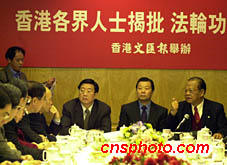 香港各界揭批“法輪功”座談會(huì)2月9日在香港文匯報(bào)社舉行,全國人大常委曾憲梓(右一)率先發(fā)言,中聯(lián)辦副主任劉山在(右三)等出席。中新社記者 任晨鳴 攝