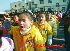 2月14日下午,安徽省繁昌縣實(shí)驗(yàn)小學(xué)舉辦“相信科學(xué)反對(duì)迷信”宣誓大會(huì),近千名學(xué)生在莊嚴(yán)的國(guó)旗下宣誓:相信科學(xué),反對(duì)迷信,遠(yuǎn)離法輪功。中新社圖 吳芳 攝