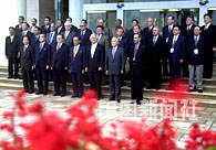 中國國家主席江澤民二十六日在海南博鰲水城集體會(huì)見出席亞洲論壇的貴賓,并在鮮艷的紅花叢前,與這些亞洲國家的前政要們和論壇秘書長合影。中新社記者 賈國榮 攝