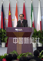 錢其琛副總理27日在海南博鰲亞洲論壇成立大會(huì)上講話,指出亞洲仍然是世界上經(jīng)濟(jì)增長最快和最具發(fā)展活力的地區(qū)之一。中新社記者 賈國榮 攝