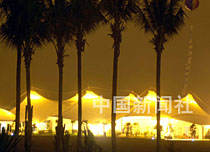 海南島博鰲椰林邊的中國最大膜結(jié)構建筑燈火璀璨,這里二月舉行亞洲論壇之后,每天吸引上萬人慕名前來觀光。為維護小漁村的自然環(huán)境,三月開始限制參觀人數(shù)。中新社記者 賈國榮 攝