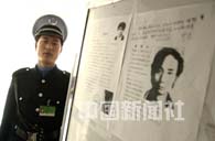 北京城鄉(xiāng)各處二十一日張貼公安機(jī)關(guān)簽發(fā)的通輯令,捉拿石家莊系列爆炸案的嫌犯靳如超,另一名為北京市通輯的第一號(hào)逃犯。中新社記者 賈國(guó)榮 攝