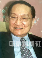 著名武俠文學大師金庸先生,二十六日在京出席四十集電視連續(xù)劇《笑傲江湖》首播式。中新社記者 錢興強 攝