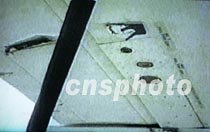 降落在海南的美軍偵察機機翼上留下多處肇事痕跡