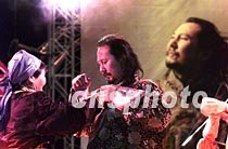 《蒼狼大地》——騰格爾演唱會(huì)五日晚在北京舉行,蒙古族歌手騰格爾的母親親手為他穿上蒙古袍。中新社記者 滿會(huì)喬 攝