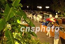 距離美國軍用偵察機撞毀中國戰(zhàn)機海域很近的海南省三亞市,度假勝地亞龍灣五星級凱萊酒店連日客滿,月夜露天餐廳服務(wù)照常。中新社記者 賈國榮 攝
