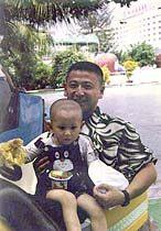 中國飛行員王偉與兒子(資料圖片)。中新社圖
