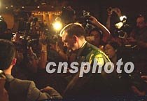 美國駐華使領(lǐng)館官員席樂高八日凌晨二時(shí)許在海口文華酒店出席海南省外事僑務(wù)辦公室舉行的新聞發(fā)布會(huì)后,面對(duì)中外記者包圍追問與機(jī)組人員第三次見面等情況,再也一言不發(fā)。中新社記者 賈國榮 攝