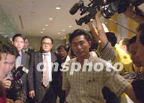 海南省政府外事僑務(wù)辦公室主任陳辭,九日晚八時許同美國駐華使館官員第四次與美機組人員見面后返回海口文華酒店。他在此間舉行的新聞發(fā)布會上指出,海南人民要求美方停止此類的偵察活動,并就此事件向中國人民道歉。中新社記者 賈國榮 攝