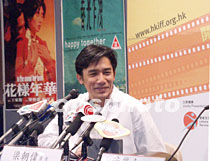 從影十九年的香港影星梁朝偉被選為二十五屆香港國際電影節(jié)的焦點演員,十日與新聞界會面。中新社傳真 張淑琴 攝