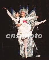組圖:芭蕾舞《大紅燈籠高高掛》在京亮相 2001年4月27日 15:46 ![]() 倍受關(guān)注的芭蕾舞劇《大紅燈籠高高掛》二十六日晚在北京天橋劇場首次彩排。圖為國家一級演員朱研主演的“三姨太”與武生趙云(扮演者孫杰)相愛一幕。中新社圖 史利 攝