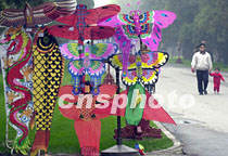北京園林商店備好多姿多彩的風(fēng)箏,為五月歡度七天長(zhǎng)假的游客準(zhǔn)備乘風(fēng)放飛。中新社記者 賈國(guó)榮 攝