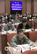 中國九屆全國人大常委會第二十一次會議二十八日在北京人民大會堂閉幕,會議表決通過關(guān)于修改中華人民共和國婚姻法的決定草案。中新社記者 毛建軍 攝