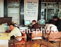 圖:拉薩“網(wǎng)吧”受外國游客的歡迎 2001年5月9日 20:29 ![]() 開設(shè)在拉薩八廓街咖啡店的“網(wǎng)吧”,很受外國游客的歡迎,每天有二十位左右客到這里上因特網(wǎng)。這個“網(wǎng)吧”是西藏第一家“網(wǎng)吧”,開張已有一年多時間。中新社圖 趙偉 攝