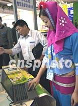 一名福建惠安女到北京參加五月國(guó)際科技博覽會(huì),她對(duì)筆記本電腦演示的智能語音軟件產(chǎn)生了興趣。中新社記者 賈國(guó)榮 攝
