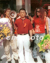 臺灣歌手齊泰、迪克·牛仔等,將于五月十二日在廣州舉行一場音樂創(chuàng)世紀大型演唱會。圖為齊泰、迪克牛仔十一日抵穗與廣州歌迷見面。中新社圖 劉衛(wèi)勇 攝