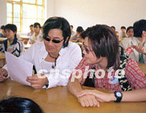 “星火行動(dòng)”之粵北科教新紀(jì)元扶貧助學(xué)系列活動(dòng),五月十四日至十六日在韶關(guān)市拉開序幕。“星火愛心大使”王杰、容祖兒來到始興縣澄江中學(xué),與學(xué)生一起上物理課。中新社圖 馮昶 攝