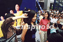 “夏士蓮黑發(fā)迎奧運”活動18日在上海舉行啟程儀式。該活動從全國各地收集自愿者捐獻(xiàn)的頭發(fā),將之編成奧運五環(huán)標(biāo)志贈送給北京奧申委,以此表達(dá)中國人的申奧心愿。圖為當(dāng)紅明星瞿穎當(dāng)眾剪發(fā)捐獻(xiàn)。中新社圖 姜煜 攝