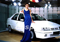 中國五月的昆明“世博2001”汽車品牌展示會上,出現(xiàn)了三十多位各種打扮的汽車模特,這些模特為本屆展示會增添了靚麗色彩。中新社圖 納家驊 攝