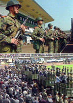 四川南充警方五月二十九日召開公捕大會,將五月在高坪區(qū)、順慶區(qū)進(jìn)行三起重大搶劫、殺人、強(qiáng)奸犯罪的犯罪嫌疑人劉天兵、劉天龍、廖雄、趙強(qiáng)四人公開逮捕。