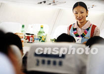 藏族空姐卓嘎日前在飛越青藏高原的“空中客車”上,為北京——拉薩航線的乘客提供細(xì)致周到的服務(wù),讓乘客盡早地感受到西藏氣息。飛行青藏高原的西南航空公司目前已經(jīng)錄用了十五名藏族空姐。中新社記者 滿會(huì)喬 攝