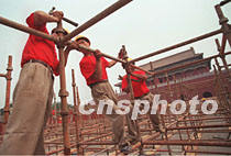 圖文:迎“三高”演唱會(huì) 紫禁城開始“整容” 2001年06月15日 07:34 ![]() 建筑工人連日在北京紫禁城午門前廣場(chǎng)搭臺(tái),為六月二十三日世界三大歌王的演唱會(huì)抓緊施工。中新社記者 史利 攝