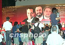 圖:中外記者關(guān)注三大男高音演唱會 2001年06月21日 18:48 ![]() 即將舉行的世界三大男高音北京紫禁城演唱會引起中外新聞媒體的關(guān)注,21日在北京舉行的新聞發(fā)布會上,數(shù)百名中外記者爭相提問。中新社記者 李剛 攝