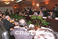 ![]() 參加中日貿(mào)易問題談判的日方人員三日下午在北京外經(jīng)貿(mào)部談判大樓參加中日貿(mào)易問題的正式磋商時(shí),臨時(shí)調(diào)整自己的坐次。中新社記者 鄒憲 攝