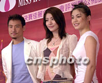 歌星張學友、陳慧琳及應(yīng)屆華裔小姐廖碧兒11日在香港出席港姐決賽十二位佳麗會晤大會評判記者會,他們將于15日晚舉行的決賽為大會作表演嘉賓。中新社圖 鄧慶樂 攝
