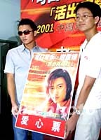 多圖:謝霆鋒巡回演唱風(fēng)下周刮到上海 2001年07月20日 15:47 ![]() 香港歌手謝霆鋒七月十九日在上海為其演唱會(huì)做前期推廣!翱煽诳蓸(lè)謝霆鋒活出真精彩2001中國(guó)巡回演唱會(huì)”將于七月二十八日在可容納八萬(wàn)人的上海體育場(chǎng)舉行。謝霆鋒希望屆時(shí)更多的歌迷能了解他、接近他。中新社記者 潘索菲 攝 ![]() 新天王謝霆鋒十九日在上海向上海慈善基金會(huì)慈善助學(xué)的受助學(xué)生代表贈(zèng)送本月二十八日在此間舉行的“可口可樂(lè)謝霆鋒活出真精彩演唱會(huì)”的門票。中新社記者 潘索菲 攝