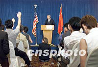 圖文:鮑威爾召開記者招待會介紹此次訪華情況 2001年07月28日 20:06 ![]() 正在北京訪問的美國國務(wù)卿鮑威爾二十八日傍晚在他下榻的北京國際俱樂部飯店回答記者提問。中新社記者 毛建軍 攝 ![]() 二十八日傍晚在北京舉行的美國國務(wù)卿鮑威爾訪華記者招待會吸引了眾多中外媒體代表到場采訪。中新社記者 毛建軍 攝