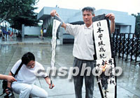 圖:南京市民強(qiáng)烈抗議小泉參拜靖國神社 2001年08月16日 17:03 ![]() 日本首相小泉純一郎參拜靖國神社,引起了中國人民的極大憤慨。南京市民以集會、簽名等各種形式表示強(qiáng)烈抗議。南京氣象學(xué)院71歲的傅逸賢副教授日前在南京大屠殺遇難同胞紀(jì)念館門前焚燒日本戰(zhàn)犯的模擬牌位。中新社圖 祁恩芝 攝