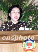 ![]() 全國政協(xié)人口資源環(huán)境委員會(huì)副主任江澤慧六日在北京舉行的“21世紀(jì)論壇--綠色與環(huán)保2001會(huì)議”閉幕會(huì)上致辭,倡議人們攜手共建人類綠色文明。中新社記者 滿會(huì)喬 攝