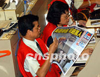 ![]() 9月12日上午,香港聯(lián)交所照常開市。中新社圖 任晨鳴 攝 ![]() 9曰12日上午,香港聯(lián)交所的交易員閱讀關(guān)于美國局勢的報紙。中新社圖 任晨鳴 攝
