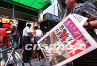 組圖:北京大學(xué)生全面關(guān)注美國“爆炸事件” 2001年09月12日 16:21 ![]() 十一日發(fā)生的美國受襲“爆炸事件”引起北京媒體關(guān)注,十二日一家媒體特意加印號外,北大學(xué)生午休時間紛紛搶購。中新社圖 張宇 攝 ![]() 十一日發(fā)生的美國受襲“爆炸事件”引起北京大學(xué)生關(guān)注,十二日中午北京大學(xué)附近近千臺電腦的網(wǎng)吧內(nèi)座無虛席,一名學(xué)生邊瀏覽網(wǎng)頁,邊翻閱報刊,全面關(guān)注此次“爆炸事件”。中新社圖 張宇 攝