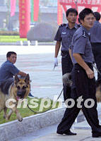 圖:南京建國以來首次施行一級安保 2001年09月16日 15:43 ![]() 第六屆華商大會即將在南京開幕,十六日清晨四只防暴犬在警員的帶領(lǐng)下對主會場進(jìn)行全面勘察,這是南京市建國以來首次實施國家一級安保措施。中新社記者 鄭萍萍 攝 |