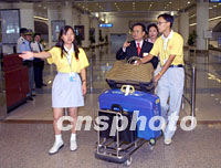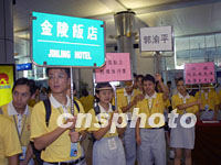 組圖:志愿者迎接即將開幕的華商大會(huì)代表 2001年09月16日 15:50 ![]() 服務(wù)于第六屆世界華商大會(huì)的志愿者十六日在南京機(jī)場(chǎng)迎接參加大會(huì)的來賓,華商會(huì)十七日將在南京拉開帷幕。中新社記者 史利 攝 ![]() 出席第六屆世界華商大會(huì)的國內(nèi)工商界人士十六日陸續(xù)抵達(dá)南京,來自南京各高校的志愿者在機(jī)場(chǎng)熱情接待來賓。中新社記者 史利 攝