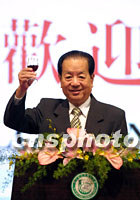 圖文:錢其琛說,世界華商對中國充滿信心與希望 2001年09月16日 19:43 ![]() 第六屆世界華商大會十六日在南京舉行盛大歡迎宴會,國務(wù)院副總理錢其琛在歡迎宴會上與會者祝酒。中新社記者 李剛 攝