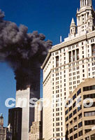 圖:美世貿(mào)中心被撞擊之后(資料圖片) 2001年09月19日 11:36 ![]() 美國紐約曼哈頓市區(qū)世界貿(mào)易中心雙子星九月十一日上午被恐怖襲擊爆炸燃燒之況,此是二號樓倒塌后,一號樓繼續(xù)燃燒。中新社圖(資料圖片) |