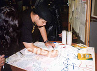 圖:紐約大學(xué)生簽名“只需要和平” 2001年09月23日 15:31 ![]() 紐約市立大學(xué)亨特學(xué)院的學(xué)生領(lǐng)袖提出一個(gè)口號(hào):“我們只需要和平!痹S多學(xué)生在簽名表示支持。中新社圖 |