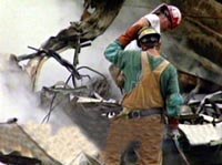 圖:撞擊世貿(mào)大樓的一客機(jī)主體被挖出 2001年09月25日 15:01 ![]() 九月十一日撞擊美國世貿(mào)大樓的一客機(jī)主體日前被挖出,這截主體殘骸大約有三米長(zhǎng),挖出后馬上被聯(lián)邦調(diào)查局人員運(yùn)走進(jìn)行檢查。 |