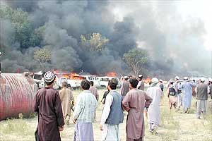圖文:阿富汗反美大示威中有12名警察受傷 2001年09月27日 11:10 ![]() 示威者圍觀美國(guó)大使館內(nèi)狂燒的車子。路透社 圖 中新網(wǎng)香港9月27日消息:幾千名阿富汗示威者昨天闖入美國(guó)駐阿富汗大使館,放火焚燒遭丟棄的汽車,火勢(shì)波及大使館的外圍建筑,但主樓并未受破壞。 塔利班士兵同大使館內(nèi)外暴亂的示威者發(fā)生沖突,消防員最終把火勢(shì)控制住?Σ紶柧焓啄X尤努斯說,12名警察在設(shè)法控制暴亂時(shí)受傷。他說:“我們盡力避免這樣的事情發(fā)生,但示威者的人數(shù)使我們不可能成功。他們有幾千人! 38歲的示威者烏拉說,示威的目的是向美國(guó)發(fā)出信號(hào)!拔覀兏傻煤谩!边@名店主說,“美國(guó)要燒掉我們的國(guó)家,所以我們焚燒他們的大使館! 美國(guó)駐阿富汗大使館自1989年起就無人駐守,只保留了一些阿富汗雇員負(fù)責(zé)維修等有限的工作。據(jù)悉,這次示威是美國(guó)遭襲以來喀布爾發(fā)生的最大規(guī)模反美事件。 |