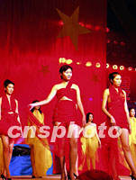![]() 正在青島舉行的2001中國青島時(shí)裝周暨服裝服飾博覽會(huì),國慶節(jié)之際舉行大型文藝晚會(huì)“海韻霓裳”。圖為五星紅旗下模特表演。中新社記者 錢興強(qiáng) 攝 ![]() 正在青島舉行的2001中國青島時(shí)裝周暨服裝服飾博覽會(huì),國慶節(jié)之際舉行大型文藝晚會(huì)“海韻霓裳”。圖為青島紡織服裝表演隊(duì),展示新款面料服裝。中新社記者 錢興強(qiáng) 攝