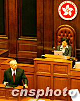 香港特首董建華發(fā)表任內(nèi)最后一份施政報告 2001年10月10日 17:36 ![]() 香港特區(qū)行政長官董建華,10月10日在香港立法會發(fā)表2001年施政報告。中新社記者 任晨鳴 攝